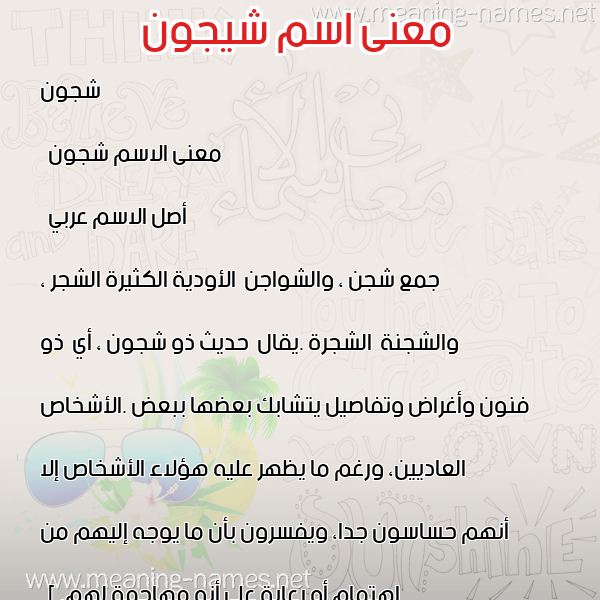 معنى اسم شيجون في قاموس المعاني و الأسماء