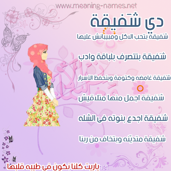معنى اسم شَفيقة في قاموس المعاني و الأسماء