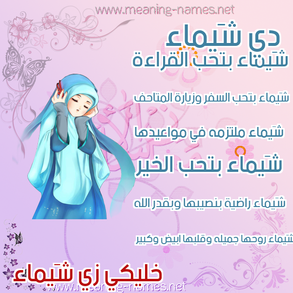 ما معنى اسمي شَيماء ؟ aQdlhx ? what the meaning of Shimaa معاني كلمة شَيماء قاموس الأسماء و المعاني و الكلمات .