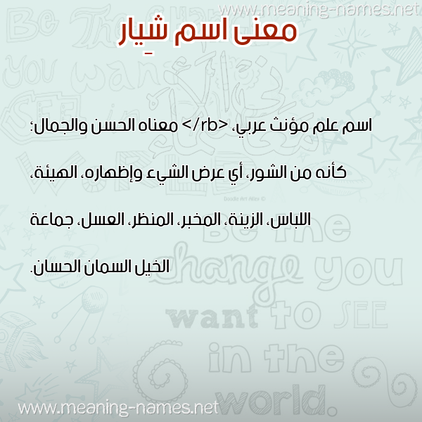 معنى اسم شِيار في قاموس المعاني و الأسماء