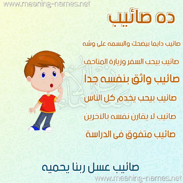 ما معنى اسمي صائيب ؟ whzdf ? what the meaning of Saeb معاني كلمة صائيب قاموس الأسماء و المعاني و الكلمات .