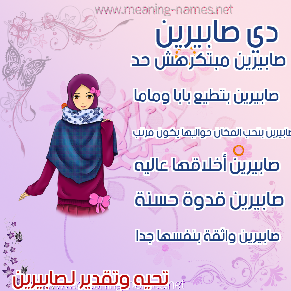 ما معنى اسمي صابيرين ؟ whfdvdk ? what the meaning of Sabreen معاني كلمة صابيرين قاموس الأسماء و المعاني و الكلمات .