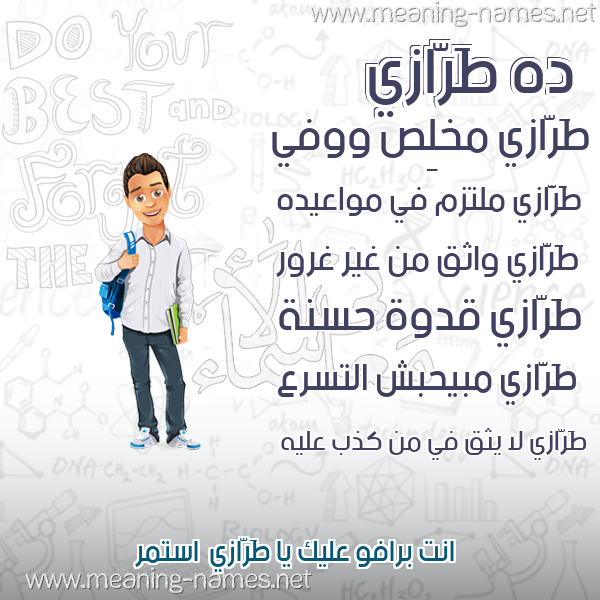 ما معنى اسمي طَرّازي ؟ 'Qv~h.d ? what the meaning of TARAZI معاني كلمة طَرّازي قاموس الأسماء و المعاني و الكلمات .