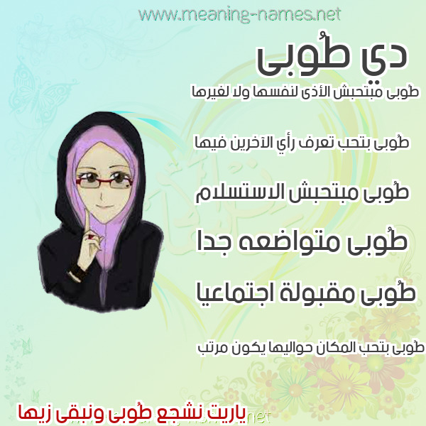 ما معنى اسمي طُوبى ؟ 'E,fn ? what the meaning of TOOBA معاني كلمة طُوبى قاموس الأسماء و المعاني و الكلمات .