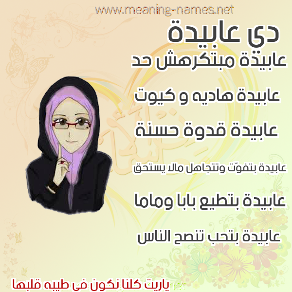 معنى اسم عابيدة في قاموس المعاني و الأسماء