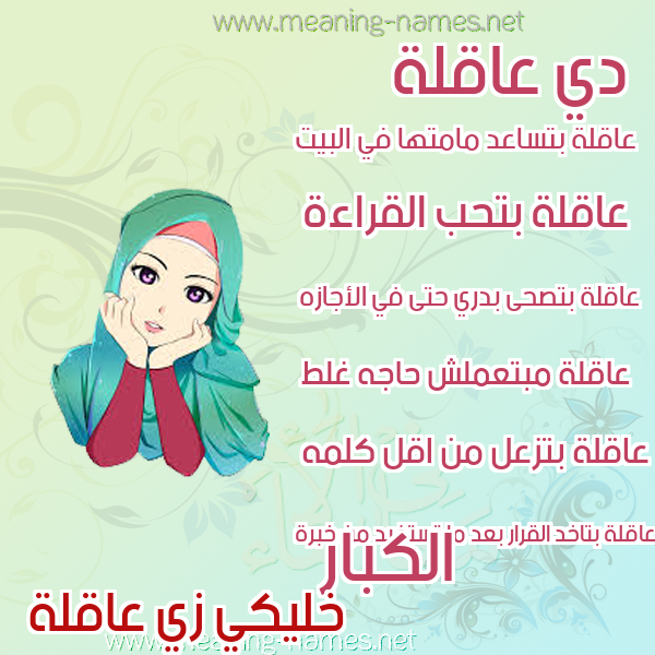 ما معنى اسمي عاقلة ؟ uhrgm ? what the meaning of Aaqlh معاني كلمة عاقلة قاموس الأسماء و المعاني و الكلمات .