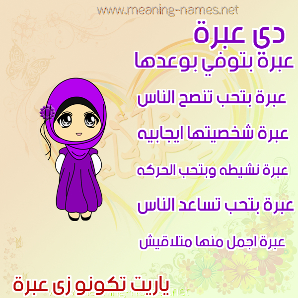 ما معنى اسمي عبرة ؟ ufvm ? what the meaning of Abrh معاني كلمة عبرة قاموس الأسماء و المعاني و الكلمات .