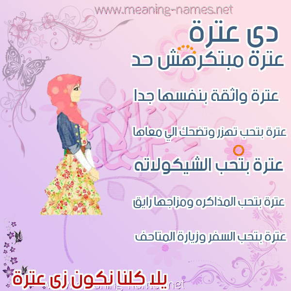 ما معنى اسمي عترة ؟ ujvm ? what the meaning of ATRH معاني كلمة عترة قاموس الأسماء و المعاني و الكلمات .
