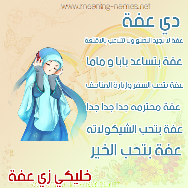 ما معنى اسمي عفة ؟ utm ? what the meaning of Afh معاني كلمة عفة قاموس الأسماء و المعاني و الكلمات .