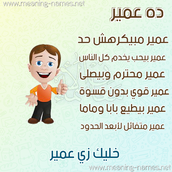 ما معنى اسمي عمير ؟ uldv ? what the meaning of Amyr معاني كلمة عمير قاموس الأسماء و المعاني و الكلمات .