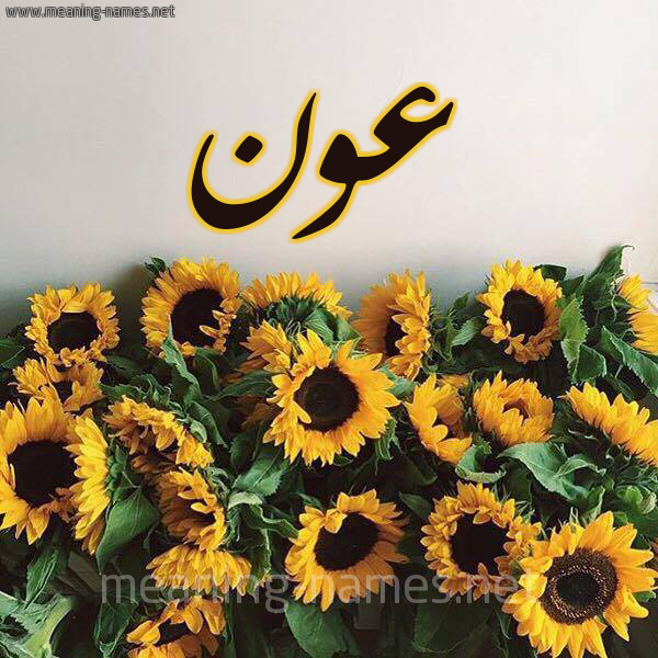 ال، الخادم ، الغوث ، الظهير على الأمر ، والعبادات .و مساعدةو معنى الاسم عون : مساعدة، و- ظهر مساند، (و- اسم صحابي: عون بن جعفر بن أبي طالب، و- اسم لأمير الحيرة وابن المنذر بن النعمان: عون بن المنذر، و- اسم خطيب ورواق أموي: عون بن عبيد الله).