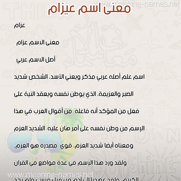 معنى اسم عيزام في قاموس المعاني و الأسماء