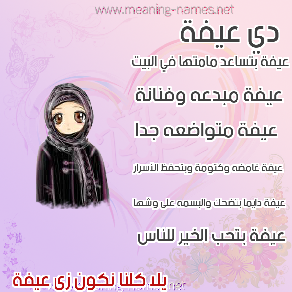 ما معنى اسمي عيفة ؟ udtm ? what the meaning of Affah معاني كلمة عيفة قاموس الأسماء و المعاني و الكلمات .