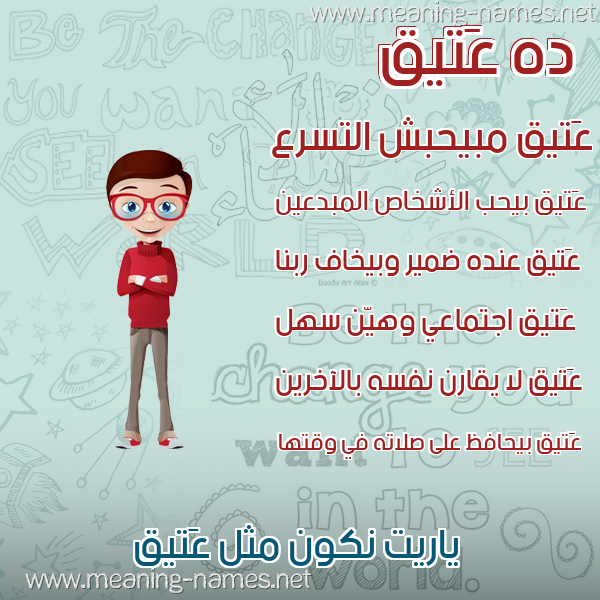 ما معنى اسمي عَتيق ؟ uQjdr ? what the meaning of AATIQ معاني كلمة عَتيق قاموس الأسماء و المعاني و الكلمات .