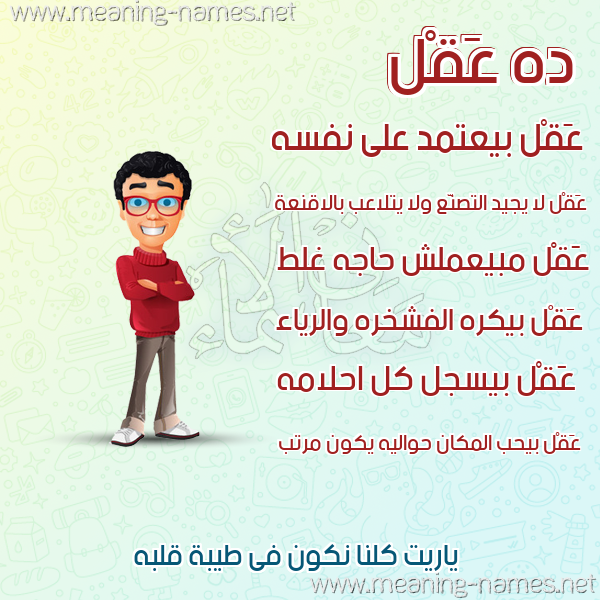 معنى اسم عَقْل في قاموس المعاني و الأسماء