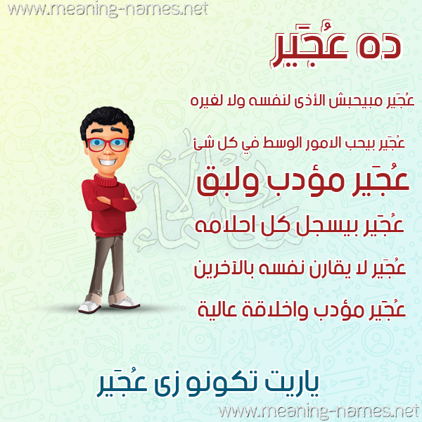 معنى اسم عُجَير في قاموس المعاني و الأسماء