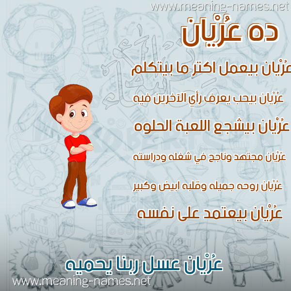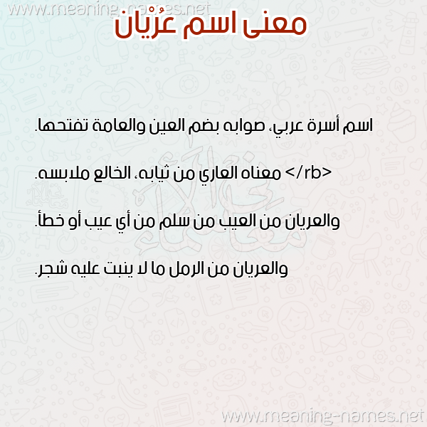 ما معنى اسمي عُرْيان ؟ uEvXdhk ? what the meaning of AORIAN معاني كلمة عُرْيان قاموس الأسماء و المعاني و الكلمات .