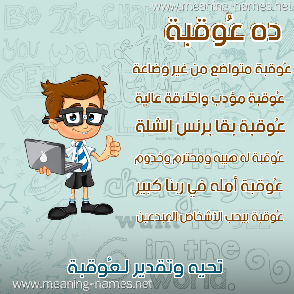 ما معنى اسمي عُوقبة ؟ uE,rfm ? what the meaning of Oqbah معاني كلمة عُوقبة قاموس الأسماء و المعاني و الكلمات .