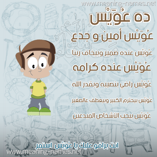 ما معنى اسمي عُوَيْس ؟ uE,QdXs ? what the meaning of AOOAIS معاني كلمة عُوَيْس قاموس الأسماء و المعاني و الكلمات .