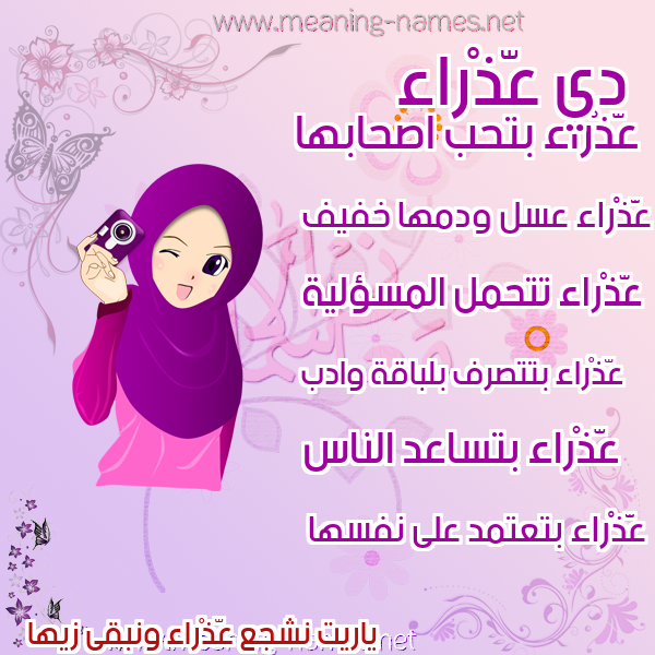 ما معنى اسمي عّذْراء ؟ u~`Xvhx ? what the meaning of AZRAA معاني كلمة عّذْراء قاموس الأسماء و المعاني و الكلمات .