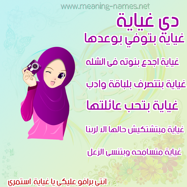 معنى اسم غياية في قاموس المعاني و الأسماء