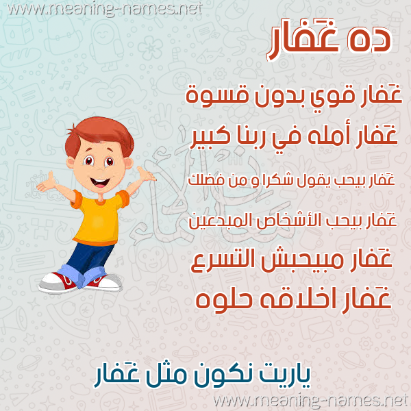 ما معنى اسمي غَفار ؟ yQthv ? what the meaning of GHAFAR معاني كلمة غَفار قاموس الأسماء و المعاني و الكلمات .