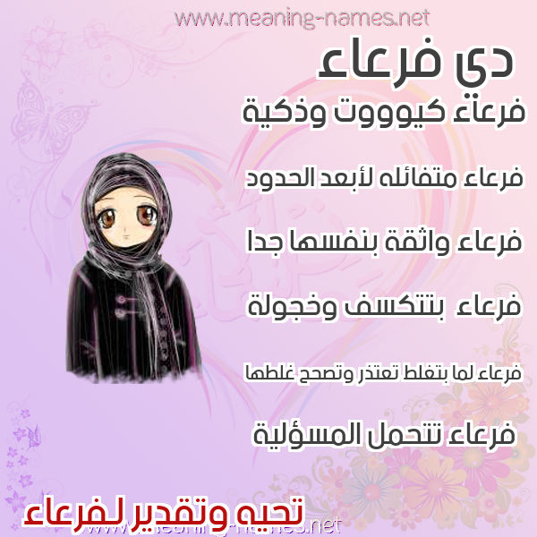 ما معنى اسمي فرعاء ؟ tvuhx ? what the meaning of FRAAA معاني كلمة فرعاء قاموس الأسماء و المعاني و الكلمات .