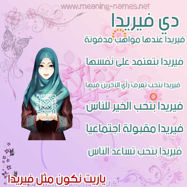 معنى اسم فيريدا في قاموس المعاني و الأسماء