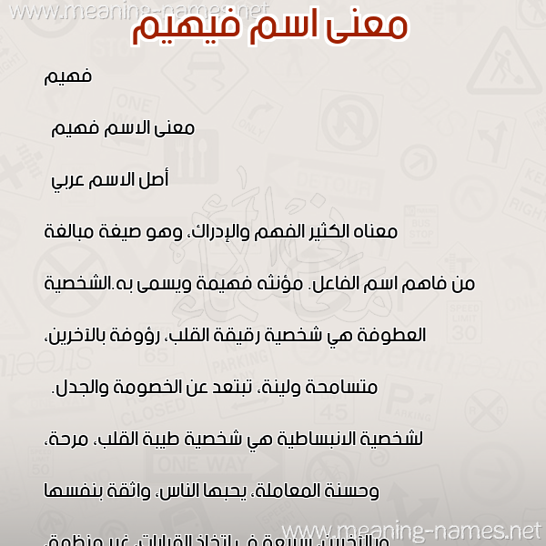 معنى اسم فيهيم في قاموس المعاني و الأسماء