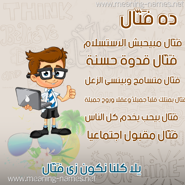 ما معنى اسمي فَتّال ؟ tQj~hg ? what the meaning of FATAL معاني كلمة فَتّال قاموس الأسماء و المعاني و الكلمات .