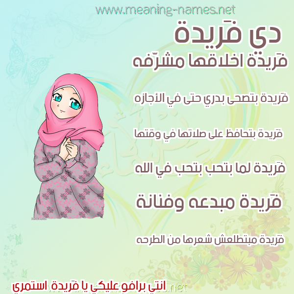 ما معنى اسمي فَريدة ؟ tQvd]m ? what the meaning of FARIDH معاني كلمة فَريدة قاموس الأسماء و المعاني و الكلمات .