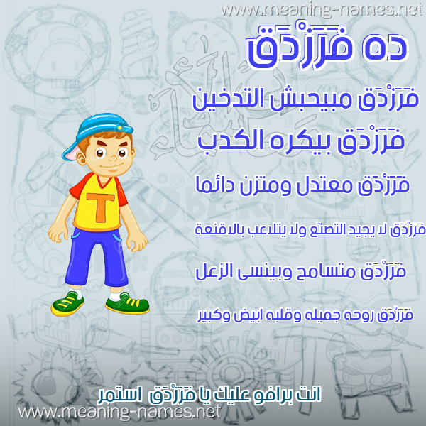ما معنى اسمي فَرَزْدَق ؟ tQvQ.X]Qr ? what the meaning of FARAZDAQ معاني كلمة فَرَزْدَق قاموس الأسماء و المعاني و الكلمات .