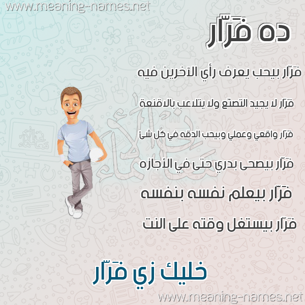 ما معنى اسمي فَرّار ؟ tQv~hv ? what the meaning of FARAR معاني كلمة فَرّار قاموس الأسماء و المعاني و الكلمات .