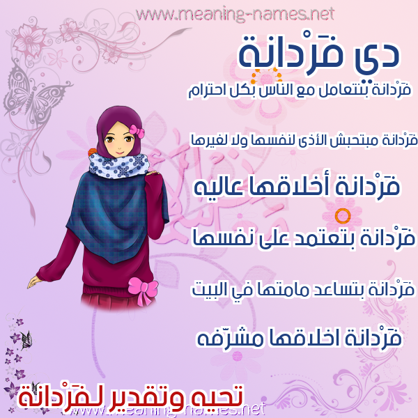 معنى اسم فَرْدانة في قاموس المعاني و الأسماء