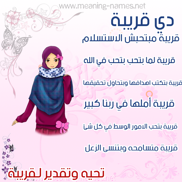 ما معنى اسمي قريبة ؟ rvdfm ? what the meaning of Qrybh معاني كلمة قريبة قاموس الأسماء و المعاني و الكلمات .