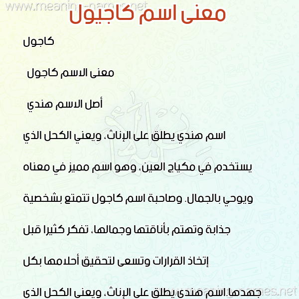 ما معنى اسمي كاجيول ؟ ;h[d,g ? what the meaning of Kajol معاني كلمة كاجيول قاموس الأسماء و المعاني و الكلمات .