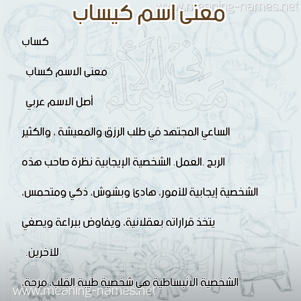 ما معنى اسمي كيساب ؟ ;dshf ? what the meaning of Kassab معاني كلمة كيساب قاموس الأسماء و المعاني و الكلمات .