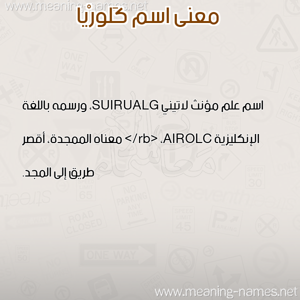 معنى اسم كَلورْيا في قاموس المعاني و الأسماء