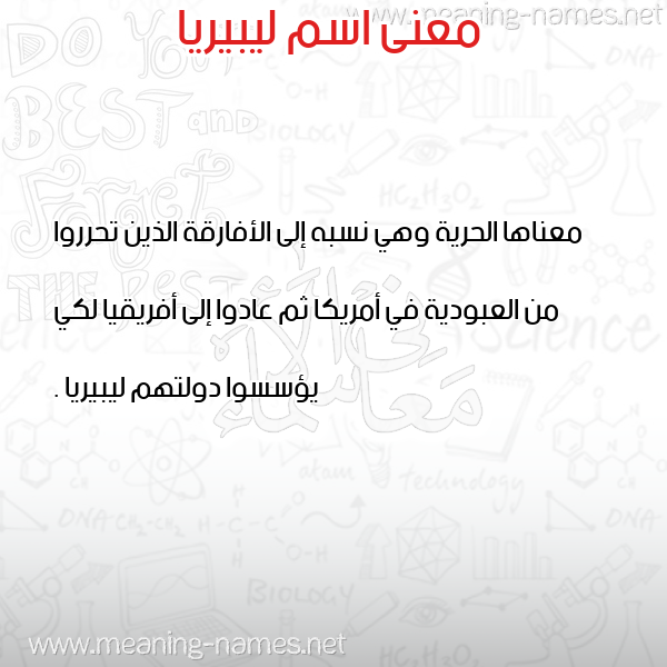 معنى اسم ليبيريا في قاموس المعاني و الأسماء