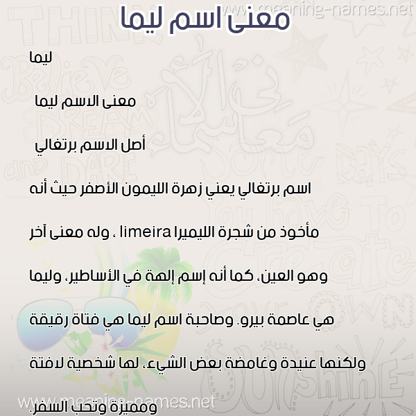 معنى اسم ليما في قاموس المعاني و الأسماء