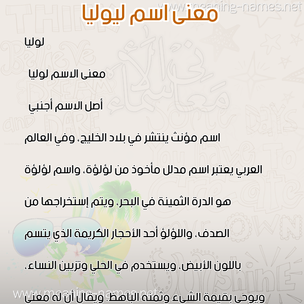 ما معنى اسمي ليوليا ؟ gd,gdh ? what the meaning of Lolia معاني كلمة ليوليا قاموس الأسماء و المعاني و الكلمات .