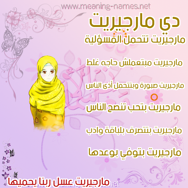 ما معنى اسمي مارجيريت ؟ lhv[dvdj ? what the meaning of Margrit معاني كلمة مارجيريت قاموس الأسماء و المعاني و الكلمات .