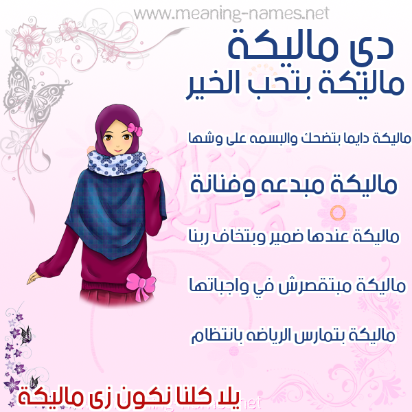 ما معنى اسمي ماليكة ؟ lhgd;m ? what the meaning of Malikah معاني كلمة ماليكة قاموس الأسماء و المعاني و الكلمات .