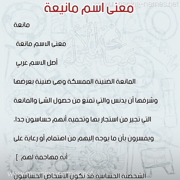 ما معنى اسمي مانيعة ؟ lhkdum ? what the meaning of Maniaa معاني كلمة مانيعة قاموس الأسماء و المعاني و الكلمات .