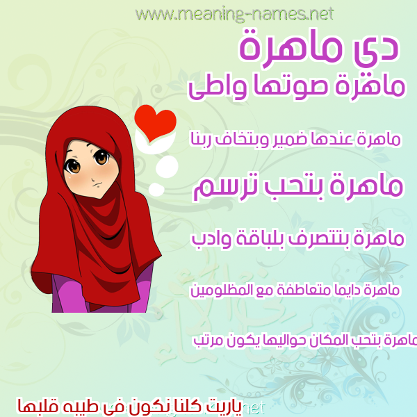 ما معنى اسمي ماهرة ؟ lhivm ? what the meaning of Mahrh معاني كلمة ماهرة قاموس الأسماء و المعاني و الكلمات .