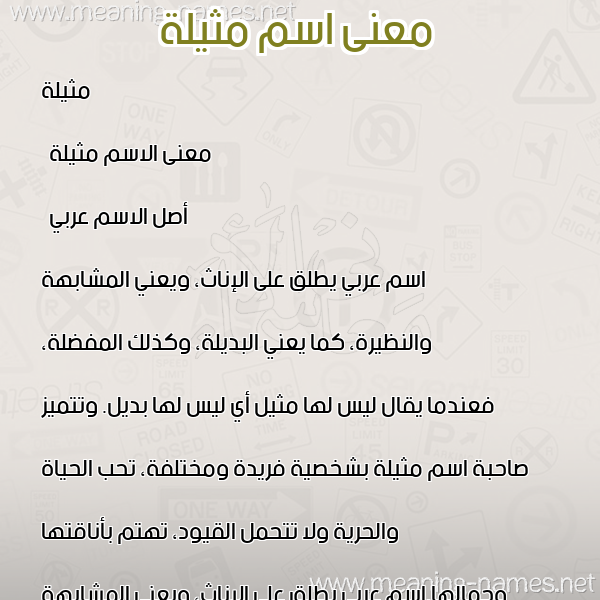 ما معنى اسمي مثيلة ؟ ledgm ? what the meaning of Mathila معاني كلمة مثيلة قاموس الأسماء و المعاني و الكلمات .