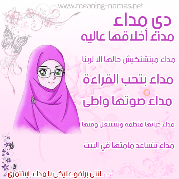 ما معنى اسمي مداء ؟ l]hx ? what the meaning of Mda'a معاني كلمة مداء قاموس الأسماء و المعاني و الكلمات .