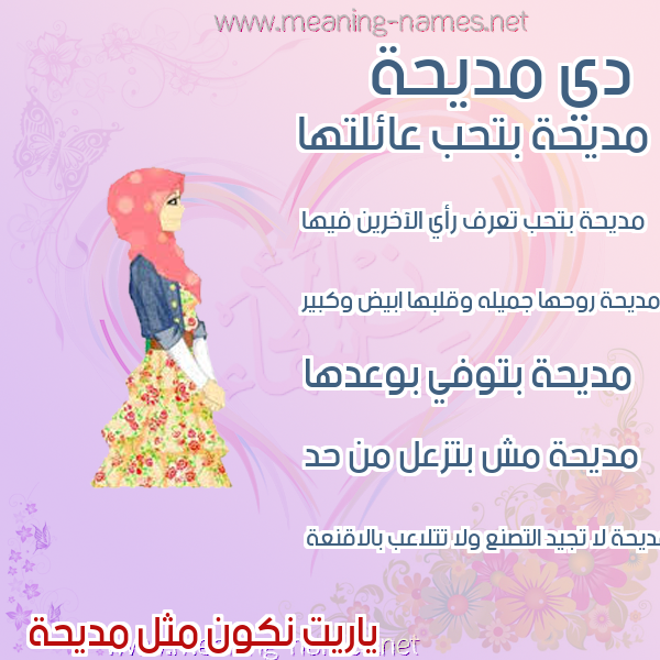 ما معنى اسمي مديحة ؟ l]dpm ? what the meaning of Mdyhh معاني كلمة مديحة قاموس الأسماء و المعاني و الكلمات .