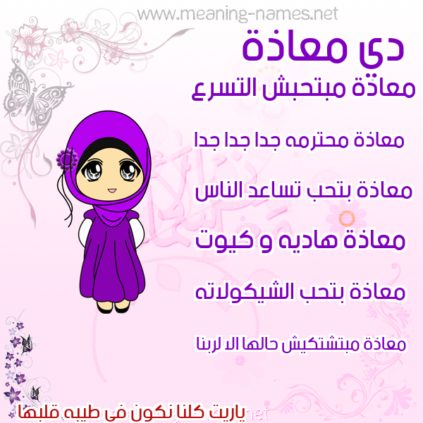 ما معنى اسمي معاذة ؟ luh`m ? what the meaning of MAAZH معاني كلمة معاذة قاموس الأسماء و المعاني و الكلمات .