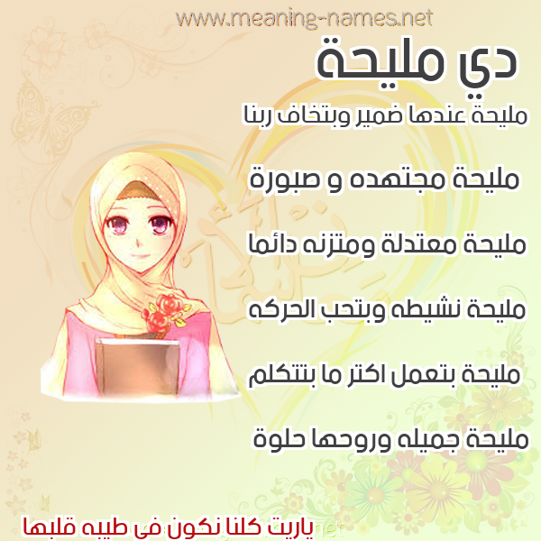 ما معنى اسمي مليحة ؟ lgdpm ? what the meaning of Mlyha معاني كلمة مليحة قاموس الأسماء و المعاني و الكلمات .